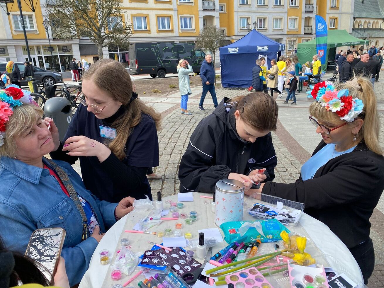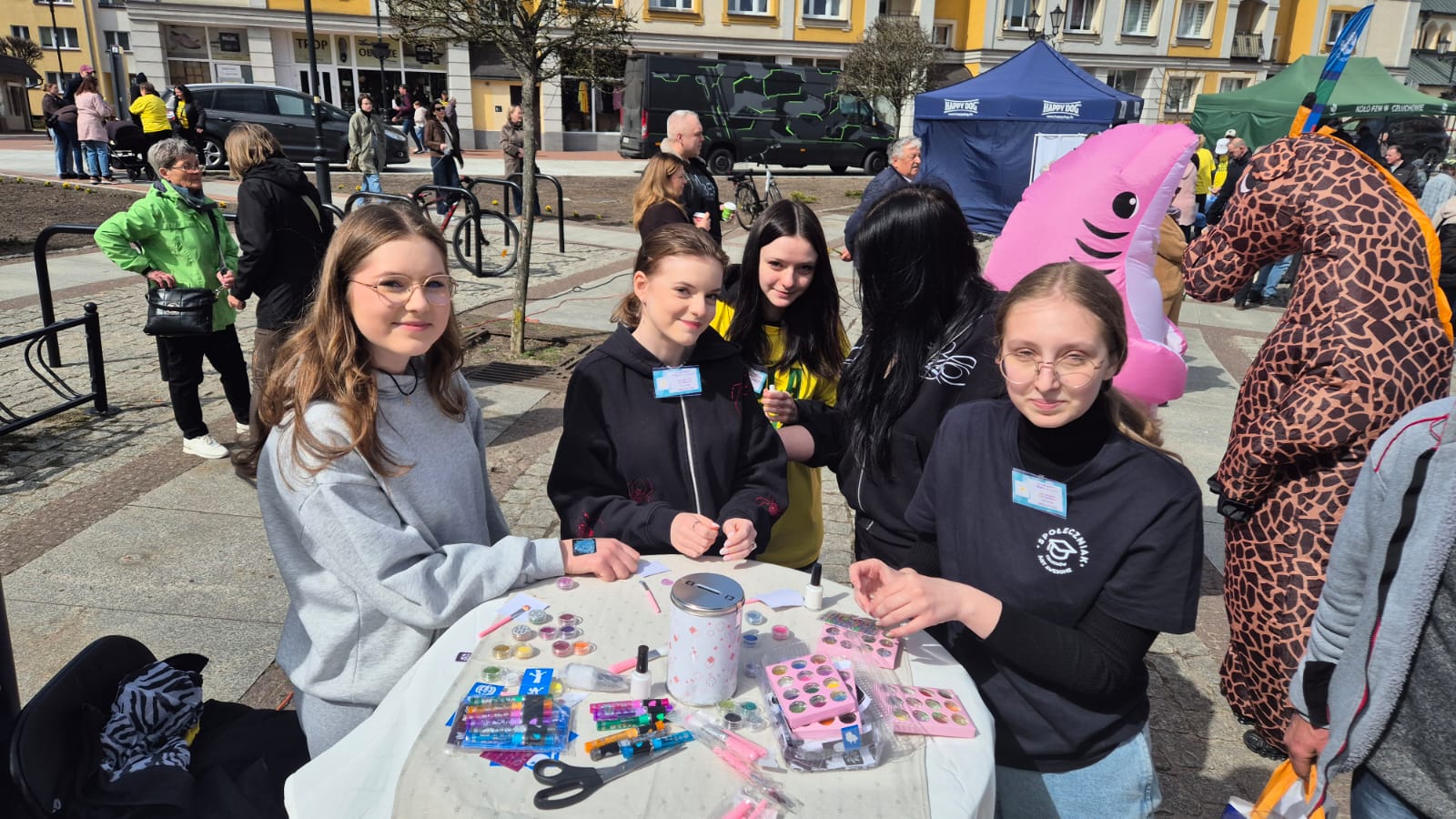 11 kwietnia nasze uczennice i nauczyciele zaangażowali się w charytatywną zbiórkę na rzecz hospicjum. Na rynku w Człuchowie wykonywali brokatowe tatuaże w zamian za dobrowolne datki do puszki